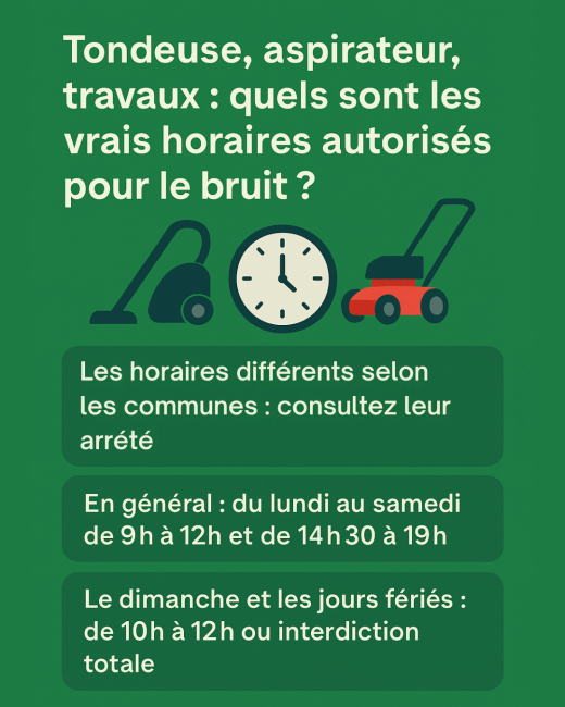 Mais que dit réellement la loi ? Existe-t-il des horaires légaux pour passer la tondeuse ou faire des travaux ? Et quelles sont les différences entre bruits domestiques, bruits de chantier ou bruits d’activité ? Voici un tour d’horizon des règles en vigueur et des bons réflexes à adopter pour éviter conflits et amendes.