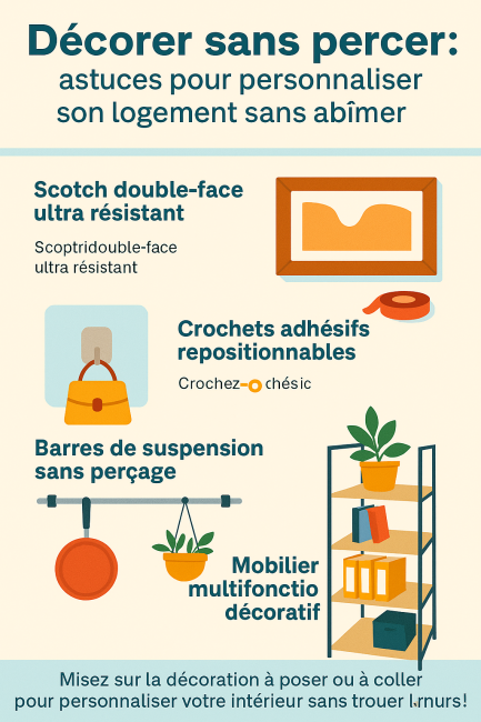Que l’on soit locataire ou copropriétaire, la décoration intérieure reste un levier essentiel pour se sentir bien chez soi. Mais comment personnaliser son logement quand les trous dans les murs sont proscrits ? Que ce soit à cause d’un bail locatif restrictif, d’un règlement de copropriété exigeant ou tout simplement par volonté de préserver l’intégrité du bâti, il existe aujourd’hui de nombreuses solutions ingénieuses pour décorer sans percer.