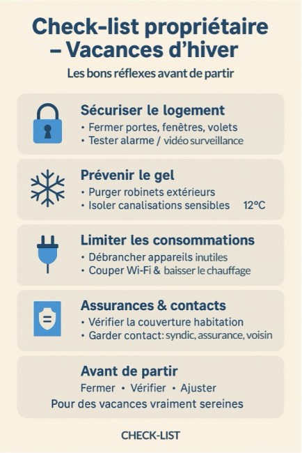Avant de fermer la porte et de profiter des pistes enneigées ou du soleil d’hiver, chaque propriétaire devrait prendre le temps de sécuriser son logement et d’anticiper quelques points essentiels.